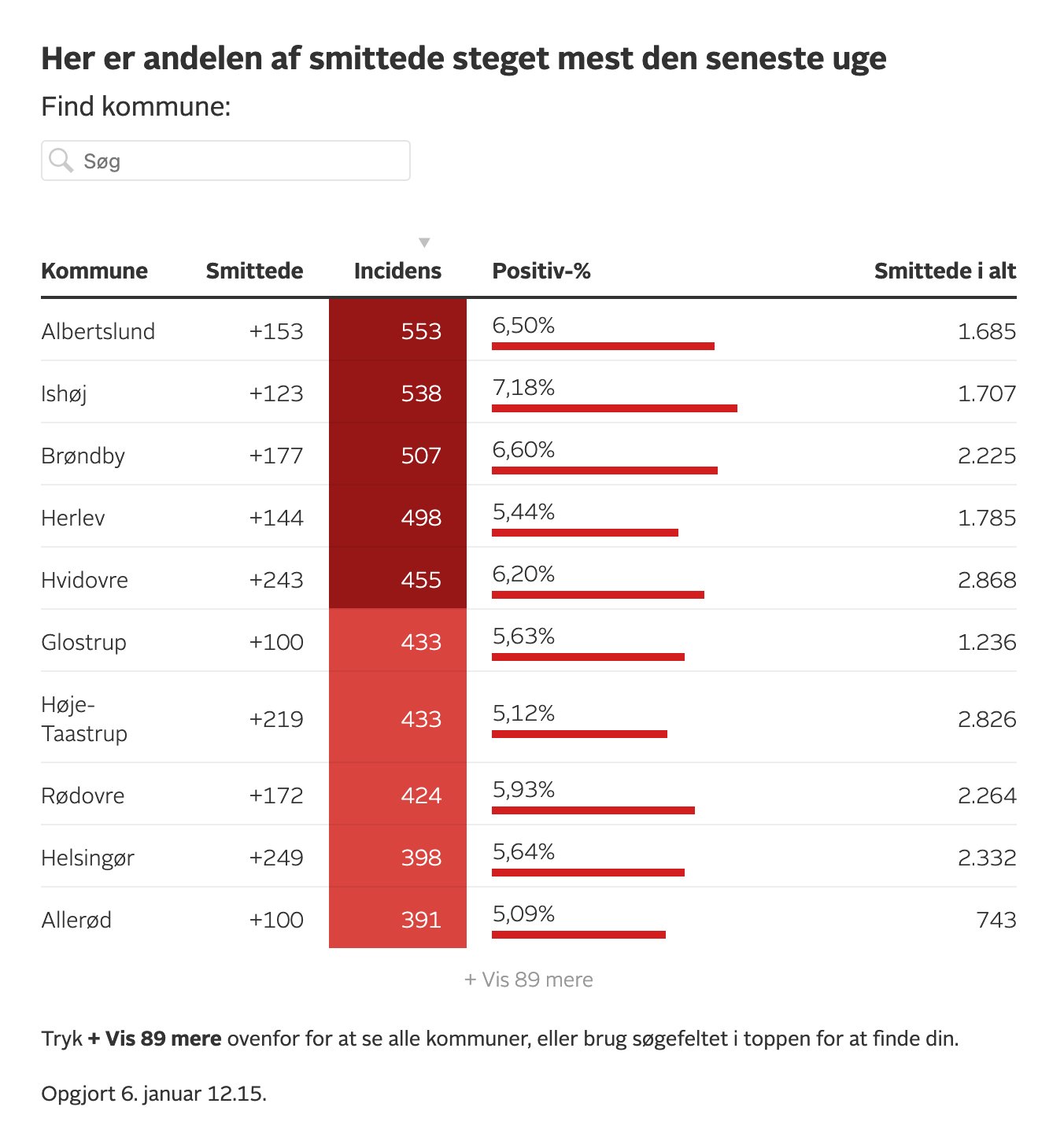 Så mange er smittede den seneste uge i din kommune. - Vi har set en opblussen i antallet af smittede i Danmark og flere lokale ophobninger. Hans-Henrik Busk Stie tv2dk De seneste 24 timer er der bekræftet 1129 nysmittede med coronavirus i Danmark.