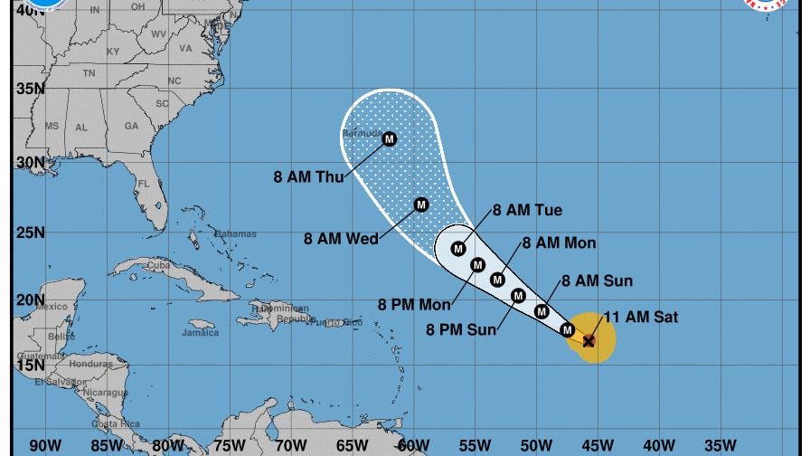 As of the 11 am. Historical data indicate that the entire 5-day path of the center of the tropical cyclone will. While the stippled area depicts the uncertainty on days 4-5.